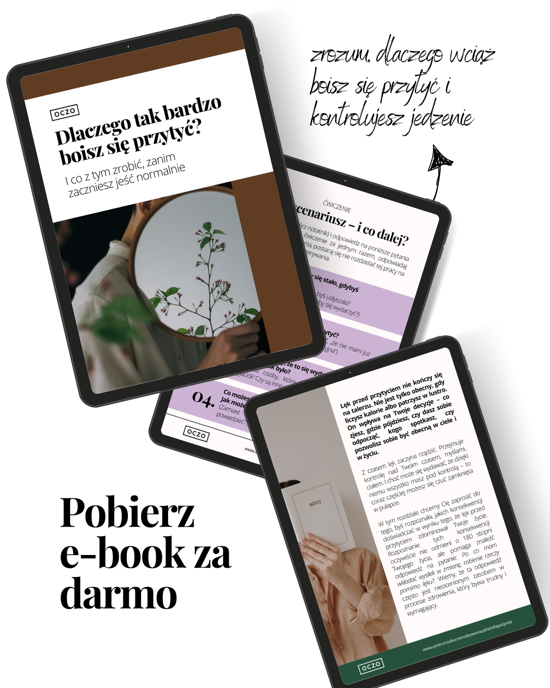 Darmowy ebook, który pomaga zrozumieć lęk przed przytyciem. Stworzony przez terapeutki – z czułością, wiedzą i wsparciem.